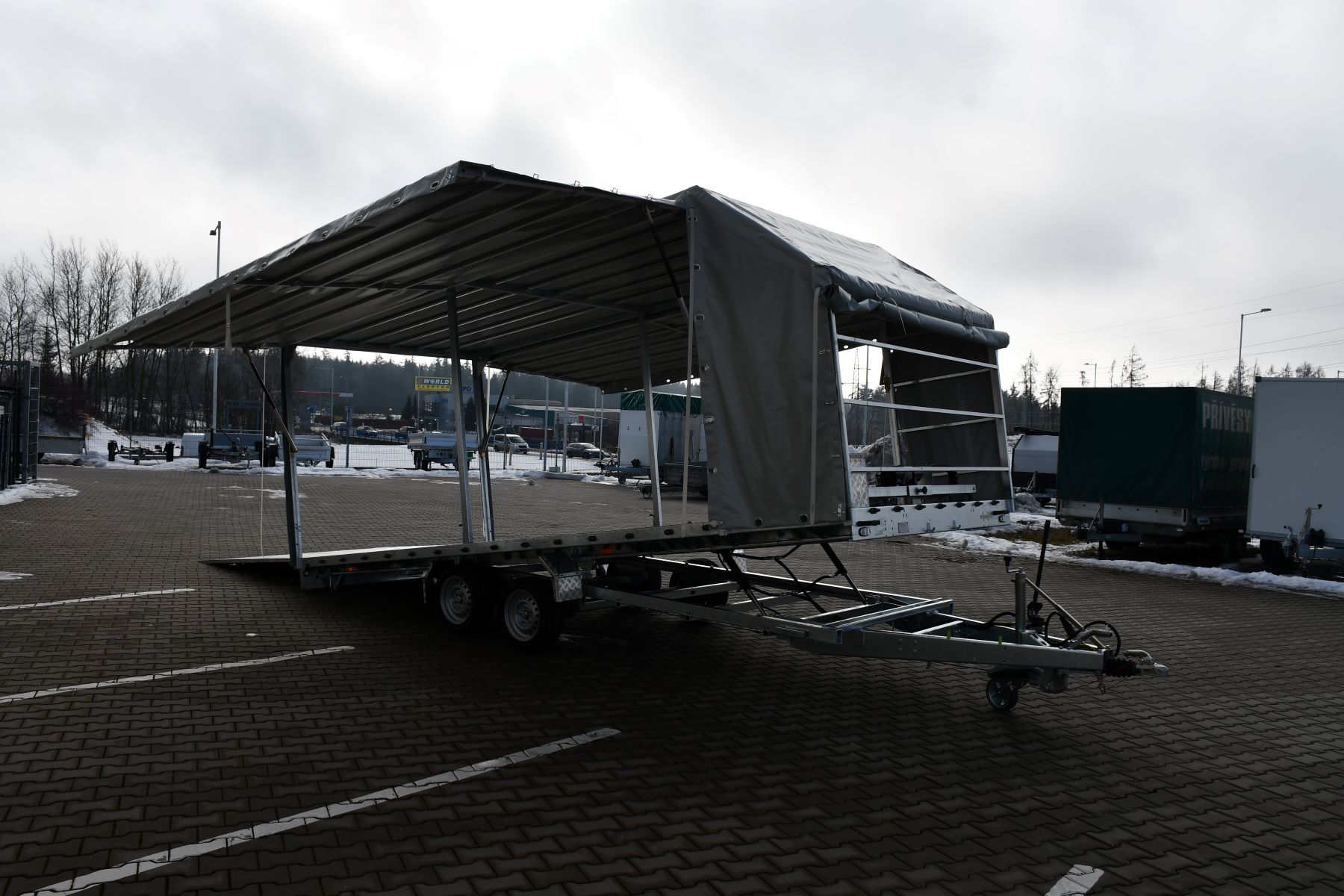 Skříňové přívěsy s koly vedle