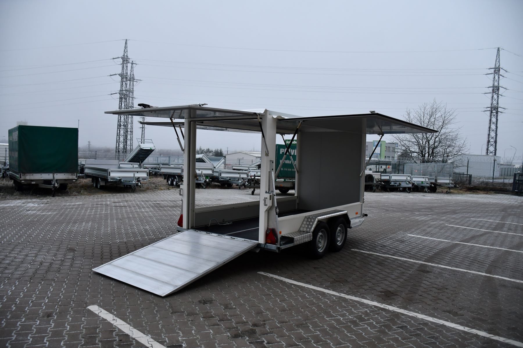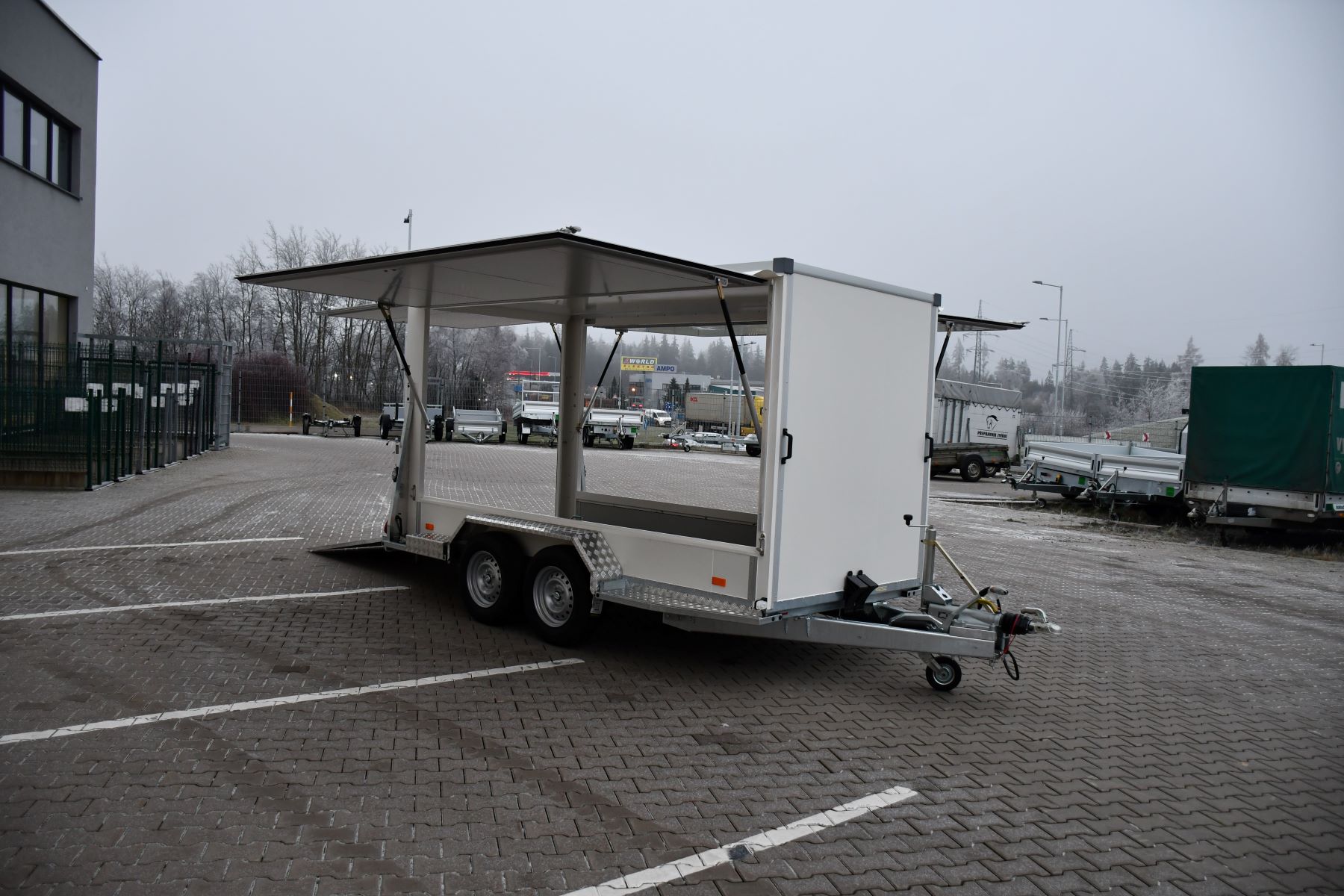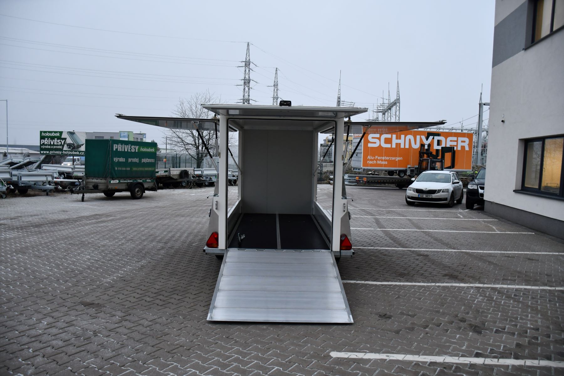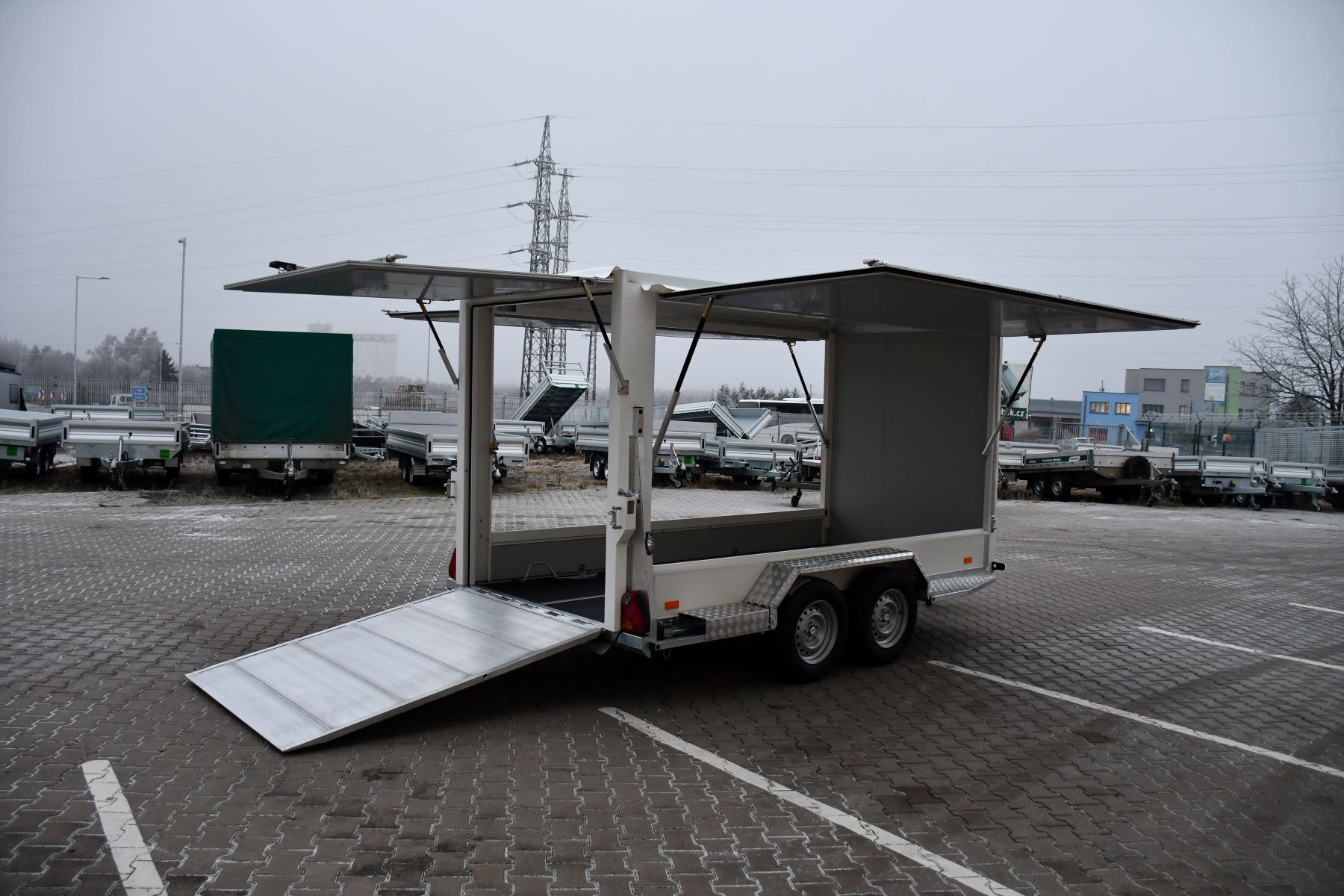 Skříňový přívěs 3500 kg s klapkami a rampou