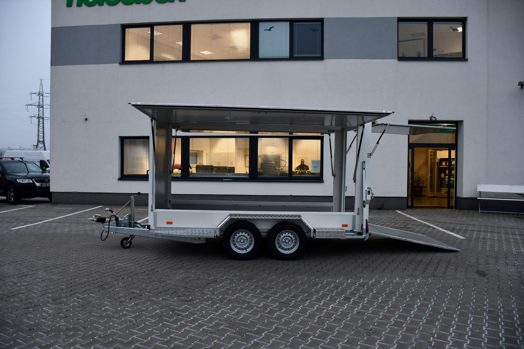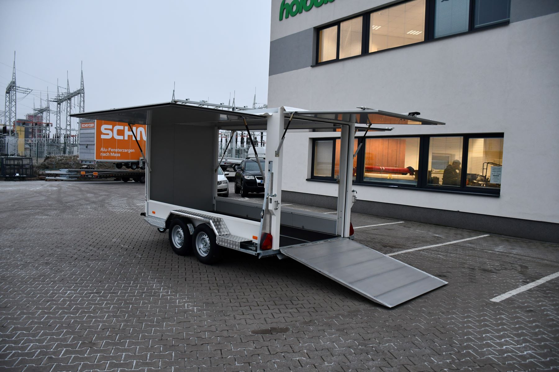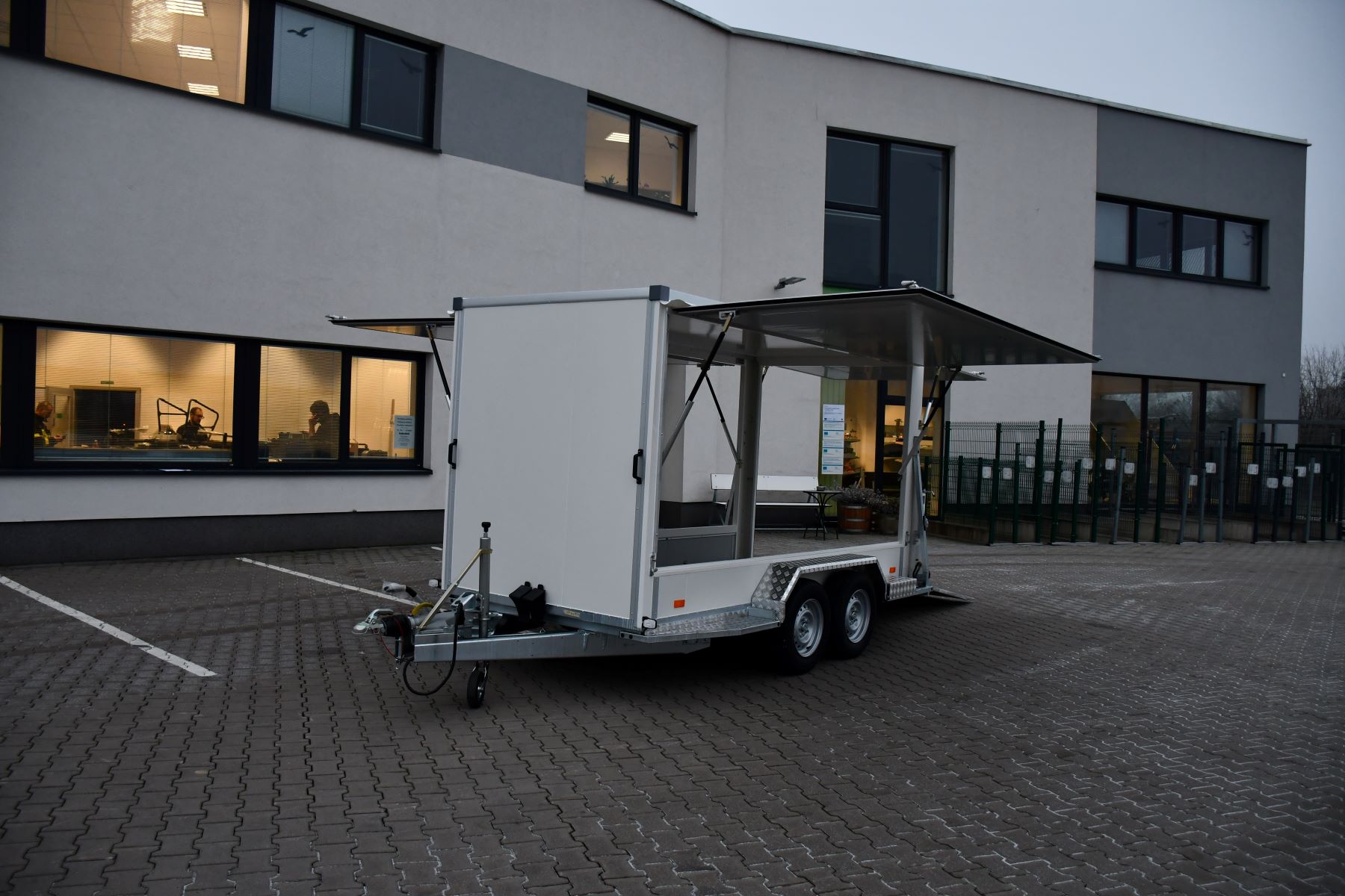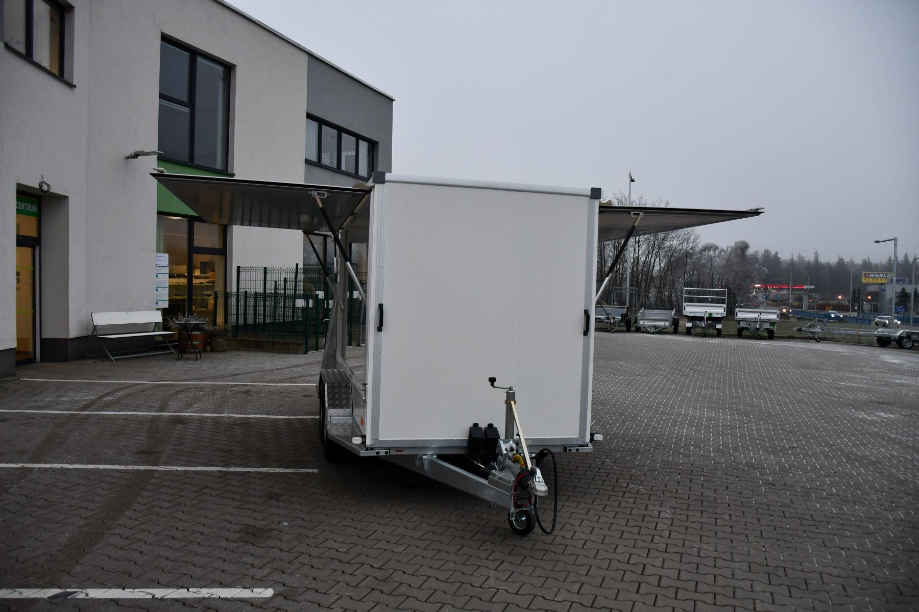 Skříňový přívěs 3500 kg s klapkami a rampou