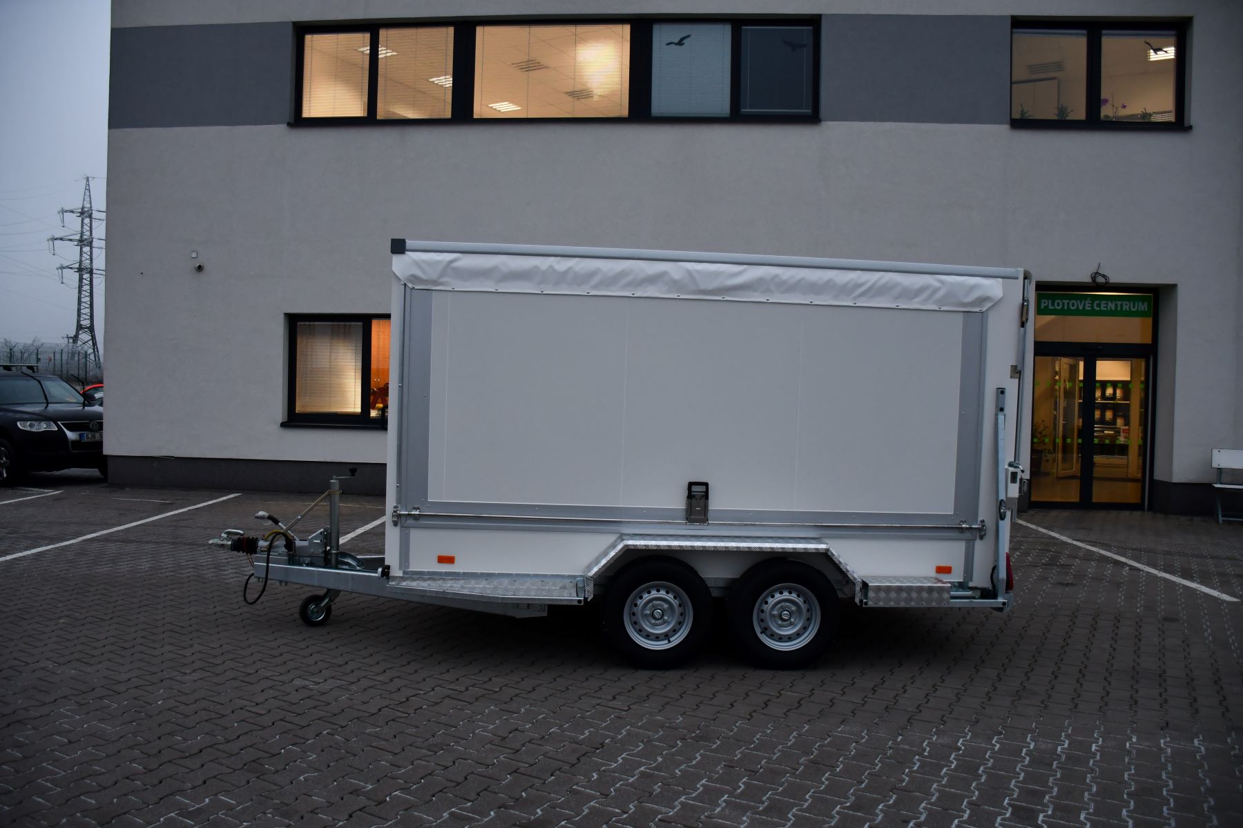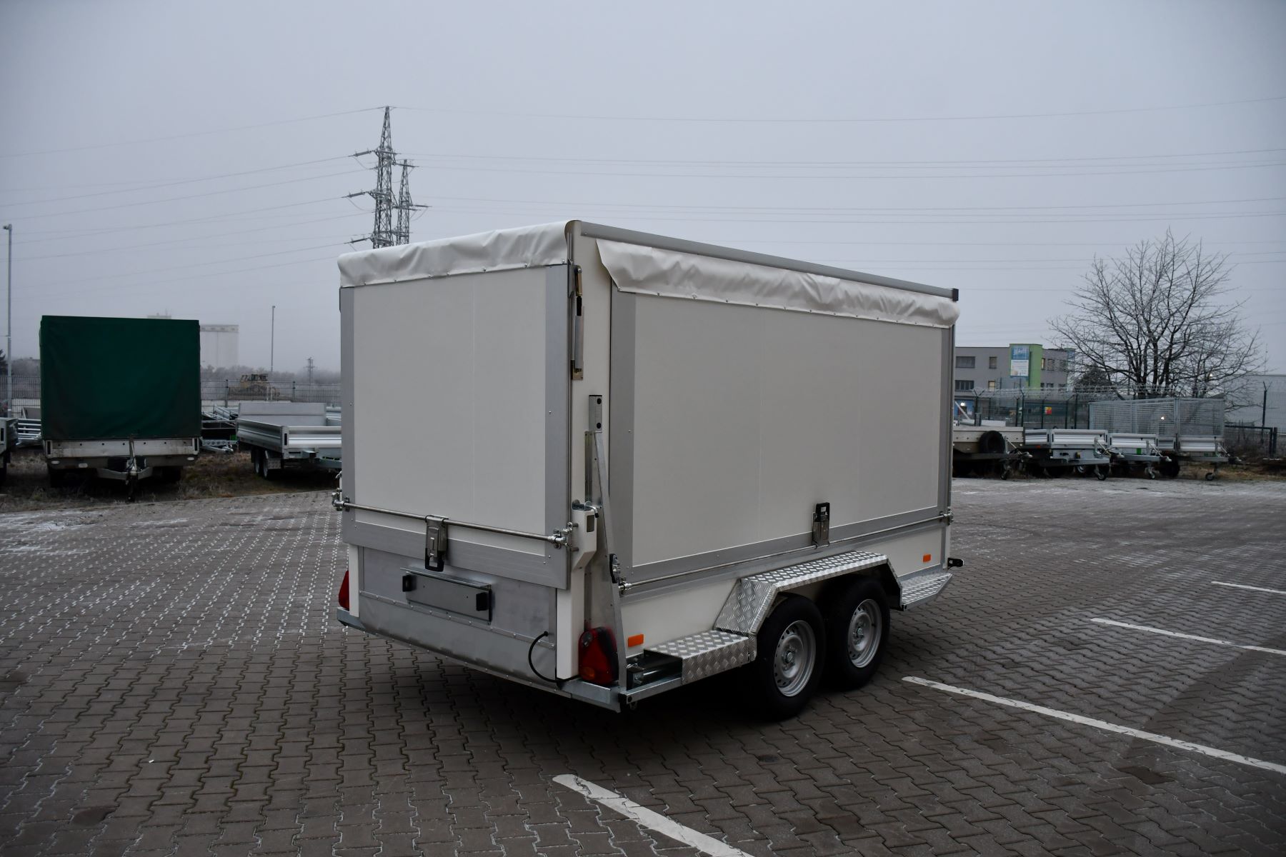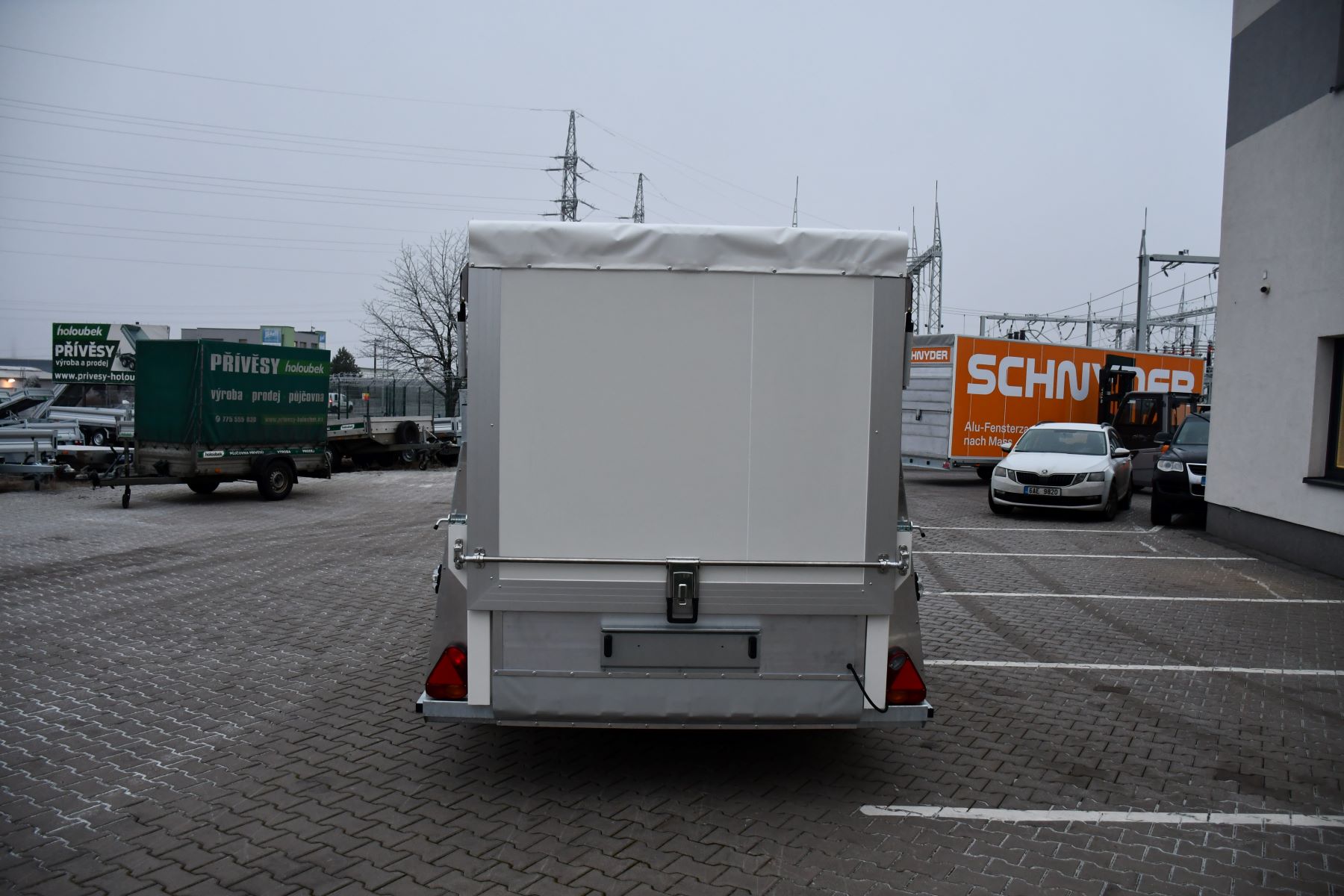 Skříňové přívěsy s koly vedle