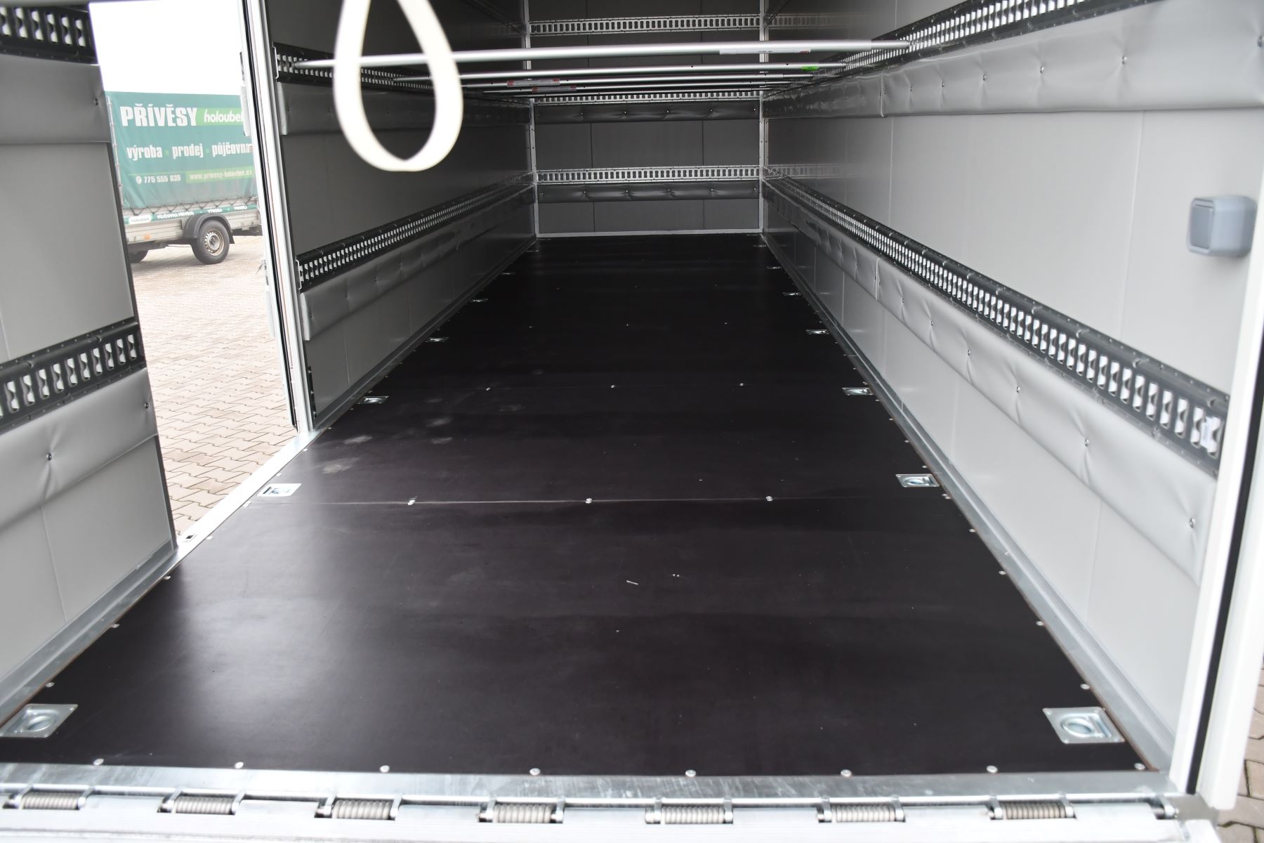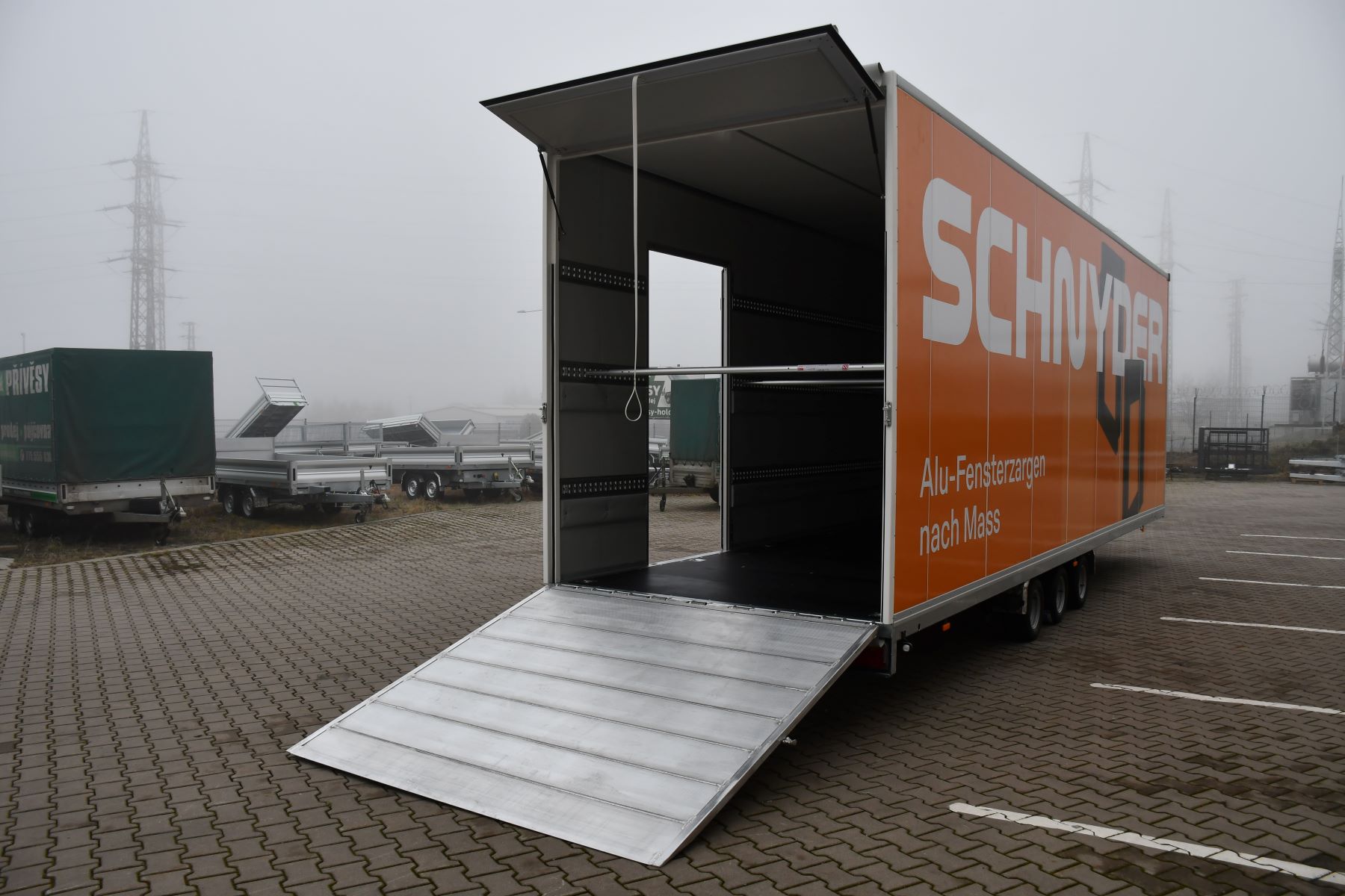 Skříňové přívěsy s koly vedle